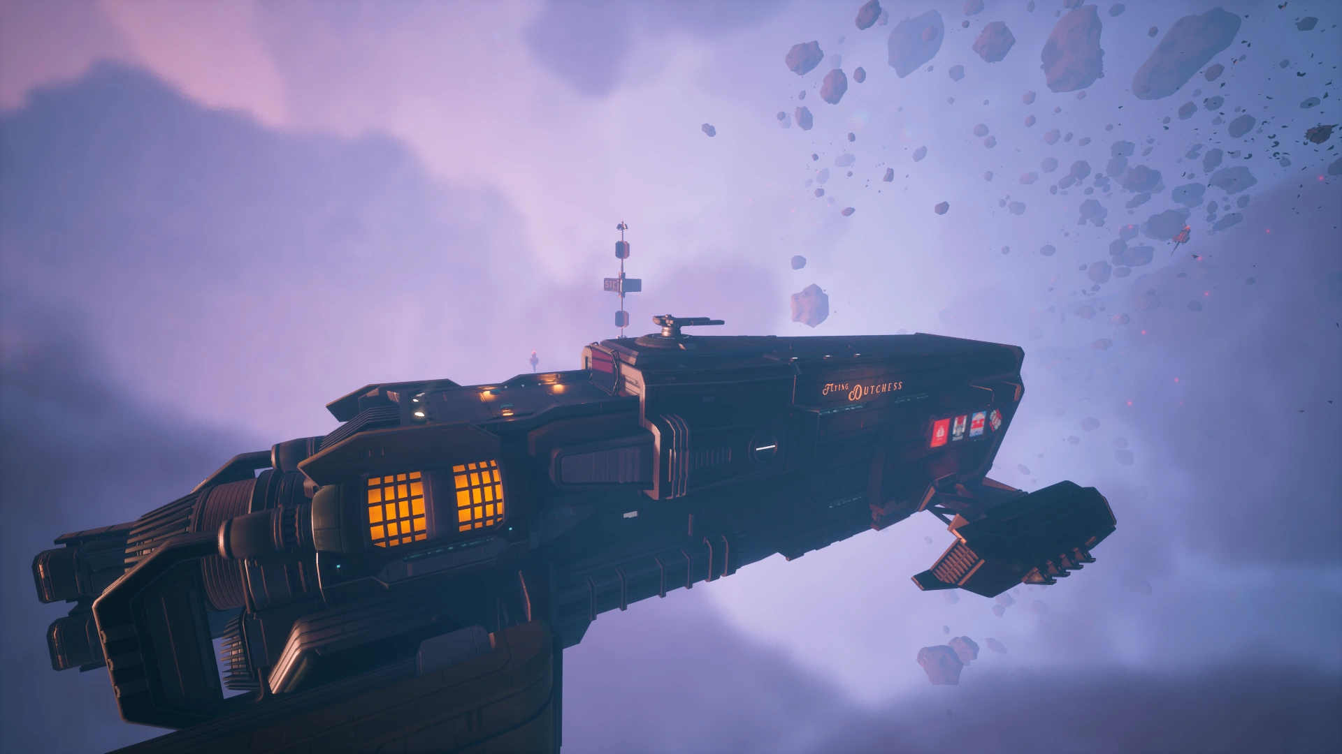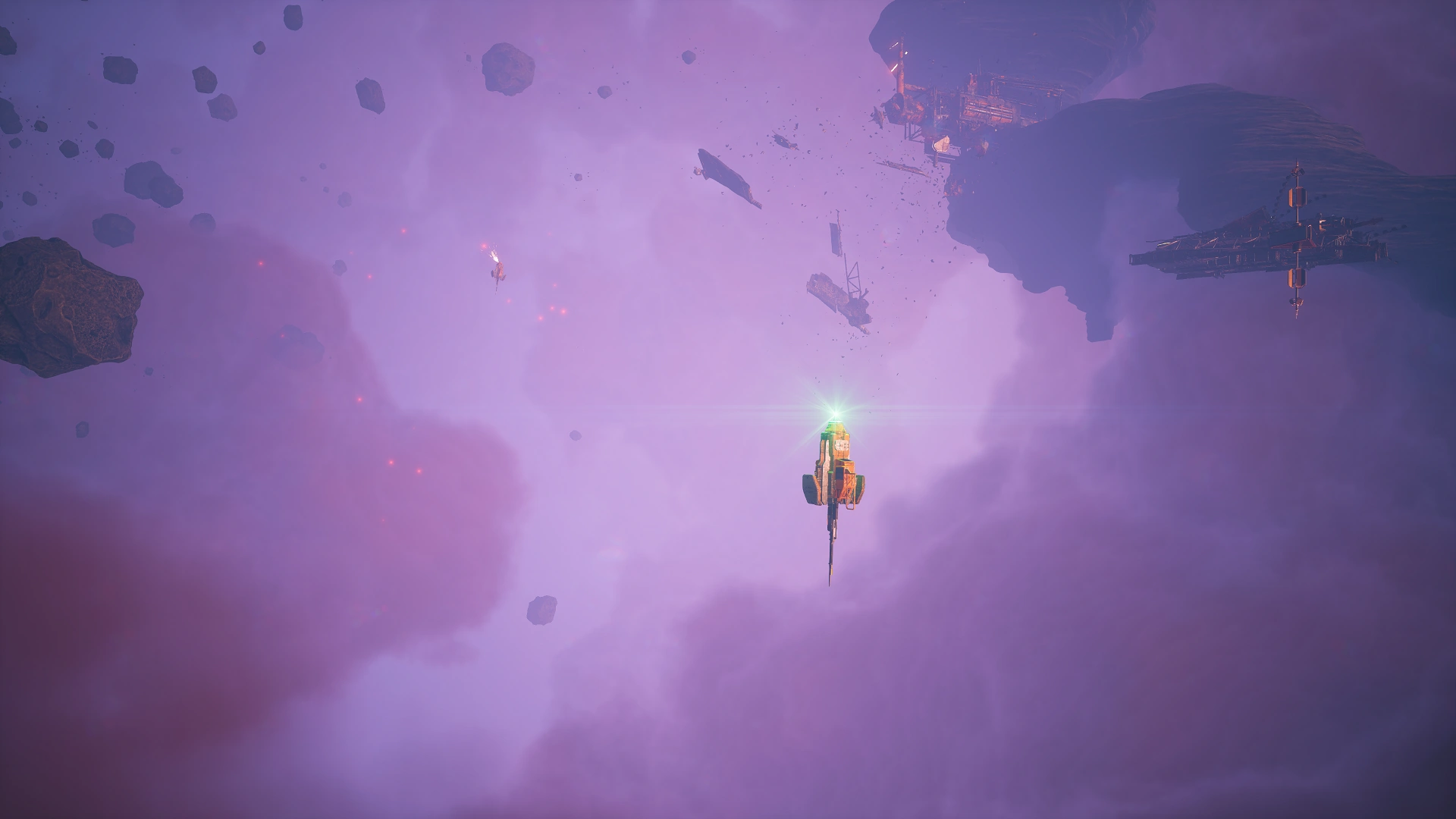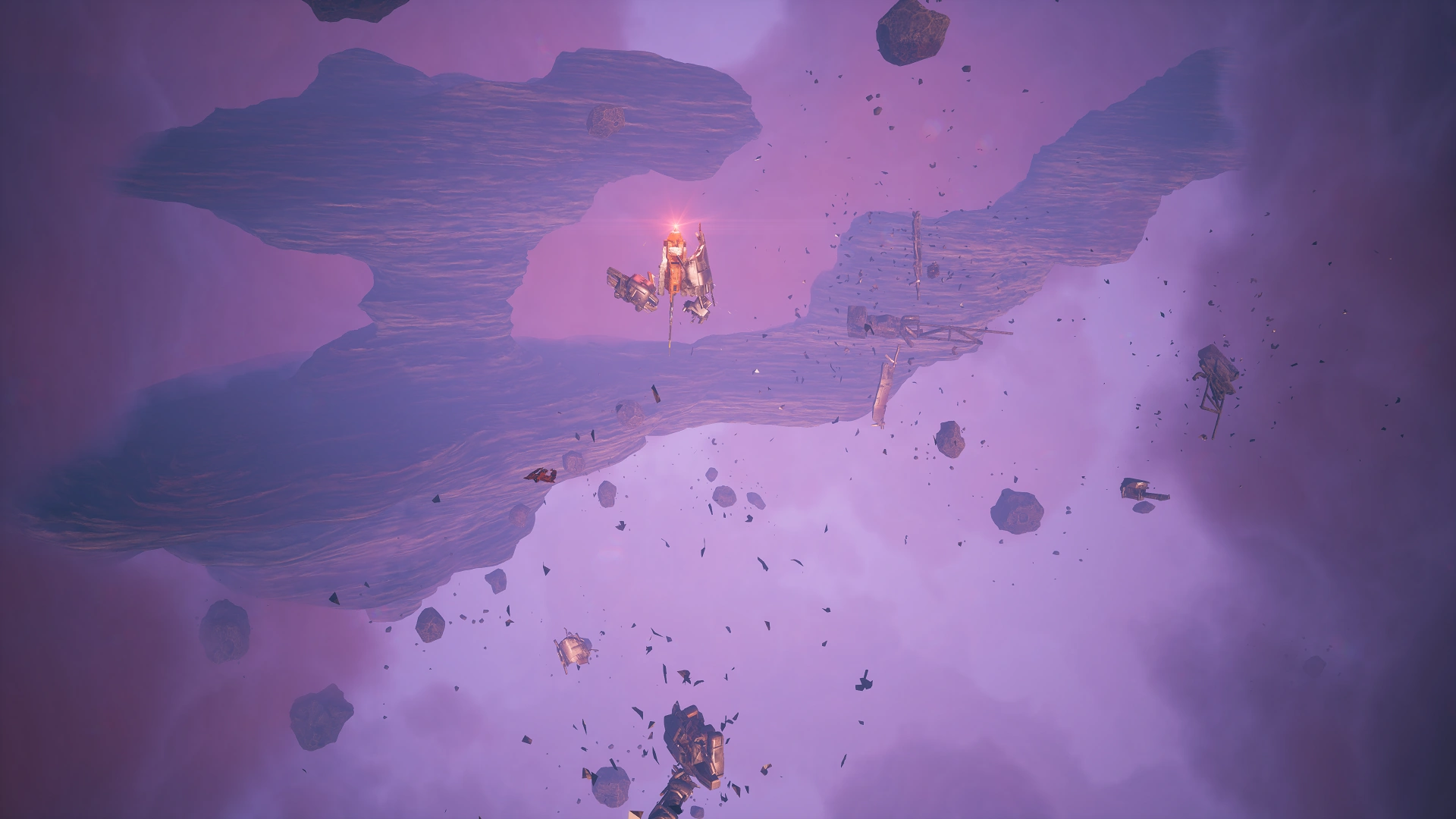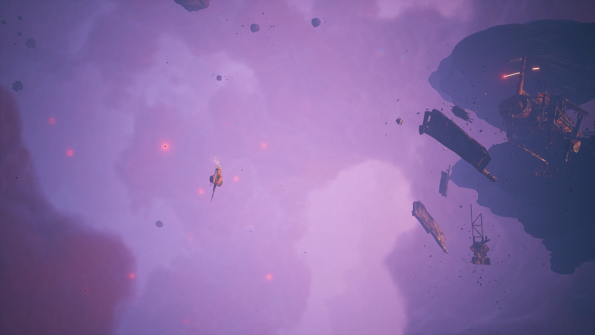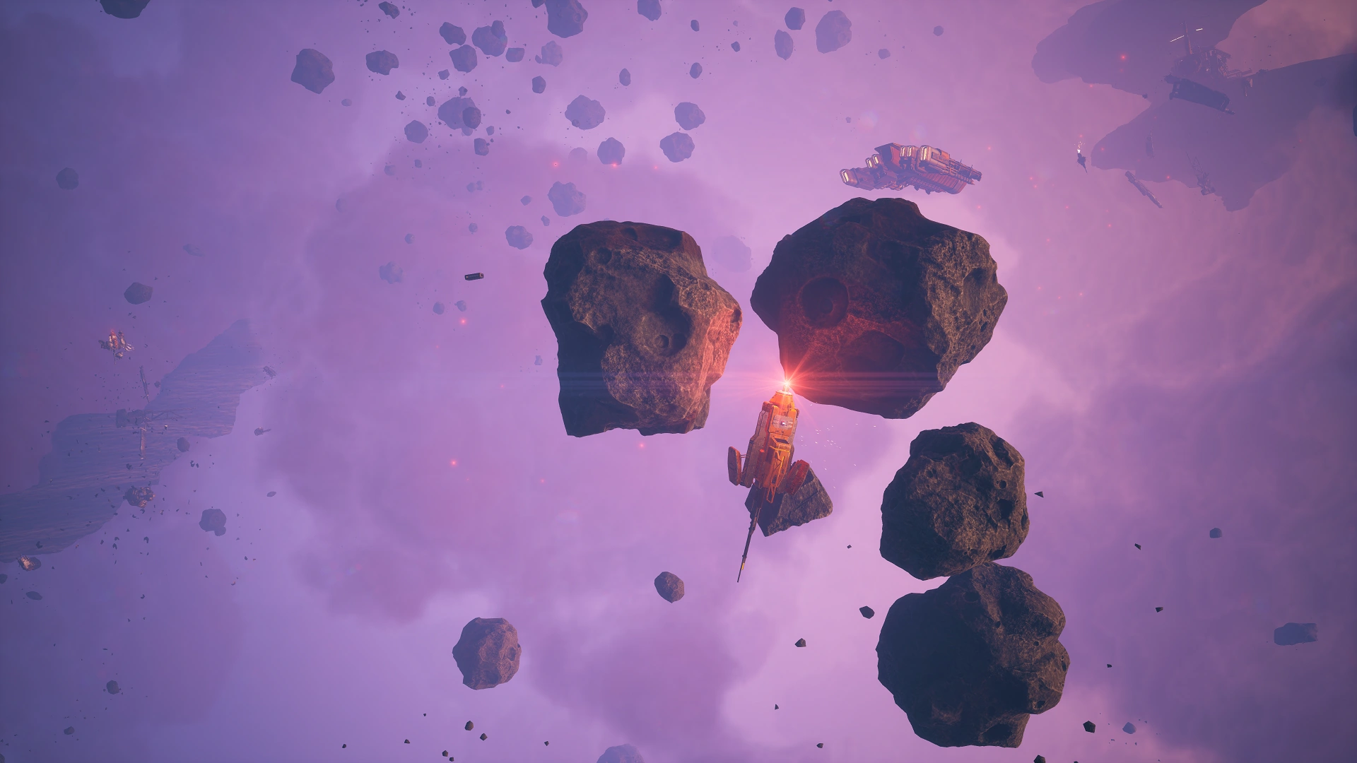 This location consists of a few large asteroids, mine and debris fields, and navigation buoys in a pink-tinted area of what appears to be a small and dense nebula.