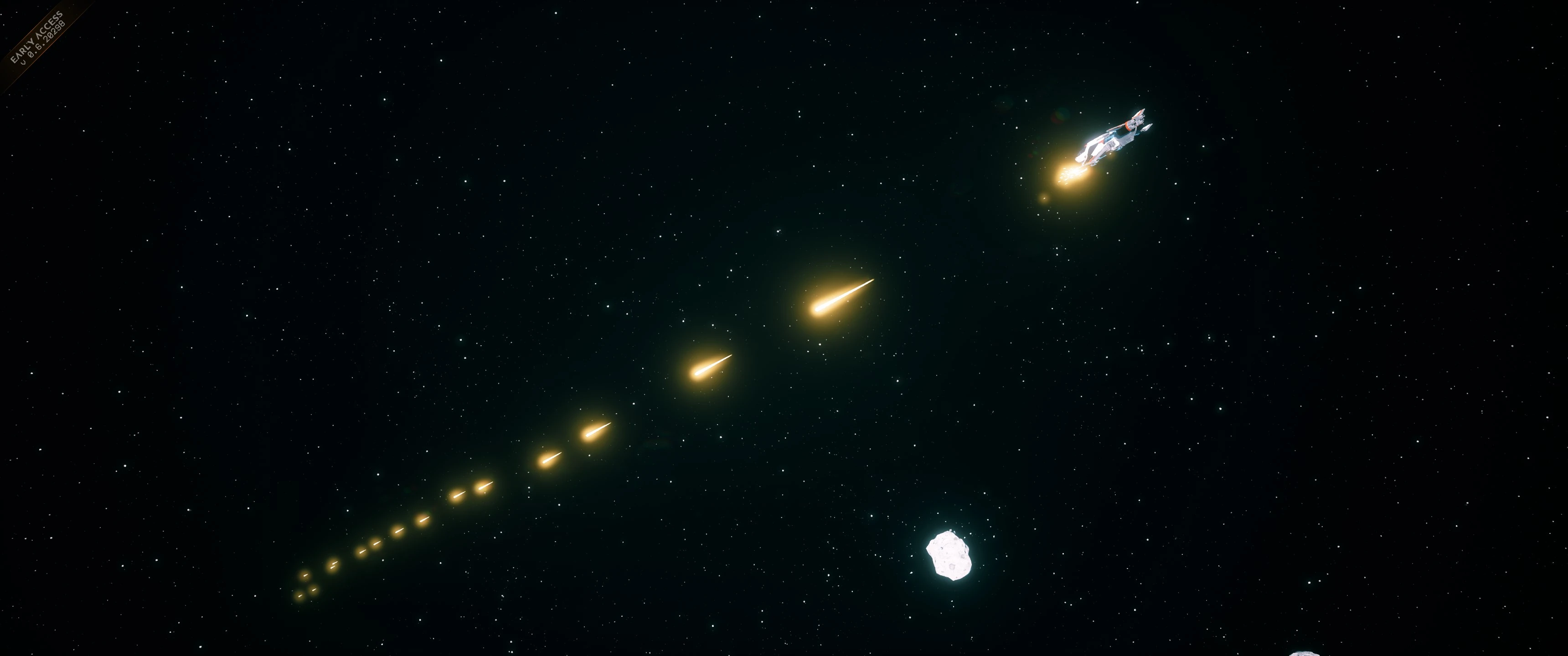 Autocannons are a primary weapon type in Everspace 2 that fires high-velocity projectiles dealing primarily kinetic damage. They have a short rev-up time before they can be fired.