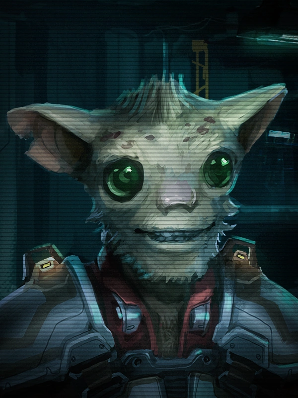 In Everspace, Elek is a high-ranking Outlaw operating in the Coalition, a major clan in the Demilitarized Zone. He was rescued by the Coalition from being sold as a pet on the black market, and has since climbed its ranks (with help from Hero). By the end of his questline, he is a councilor, overseeing raids on hostile clans.