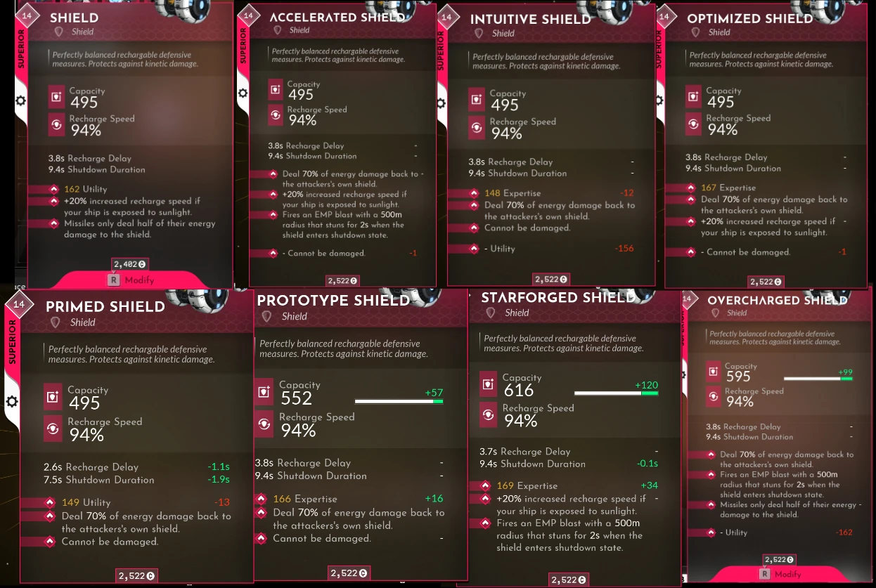 The following modifiers can be found on shields with a rarity of Uncommon or higher. For more information, see Modifiers and Modules for universal modifiers.
