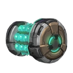 Like all Okkar module variants, the Skirmisher Shield features a unique design with a chitin like tan colored casing and greenish glowing Viridium Crystal elements.