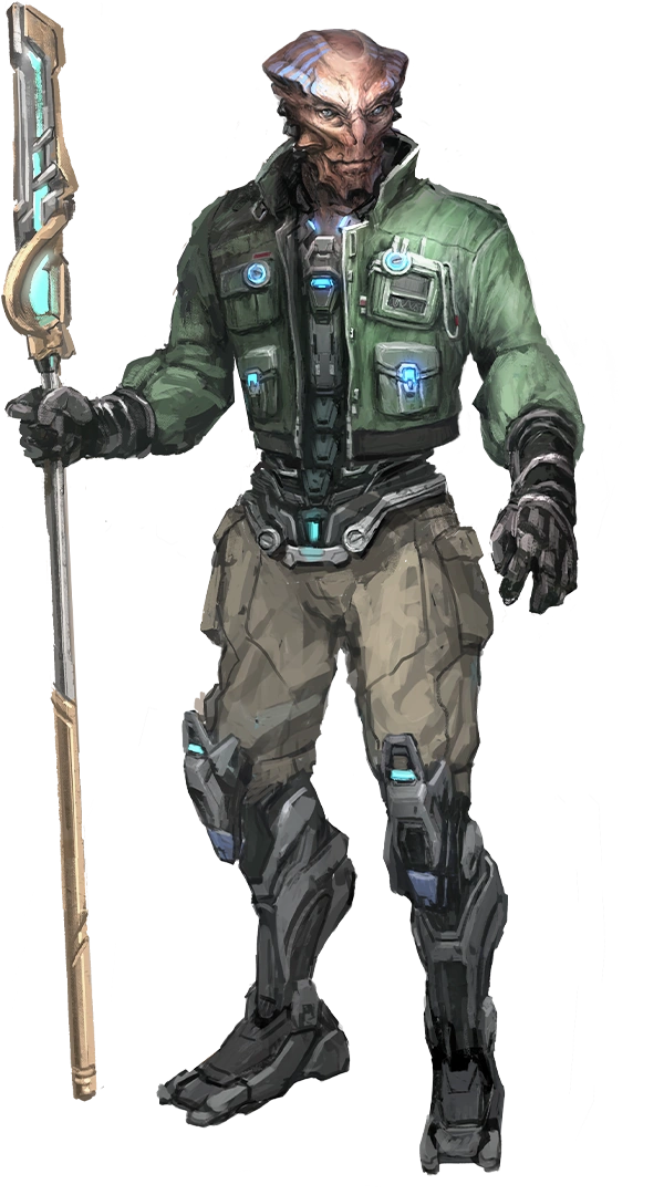 Tareen is an independent Okkar trader that operates in the Demilitarized Zone in Everspace and Everspace 2. In his early life, he was originally designated to be some sort of warrior or servant on the Okkar homeworlds, but wanted to be a cleric. Unhappy, he chose exile in order to have freedom, explaining his unexpected presence as a friendly Okkar in the DMZ.